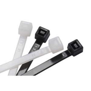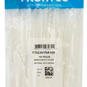 Abraçadeira em nylon 6.6 (PA 6.6). Sem proteção UV, é indicada para ambientes internos, onde não sobre a ação do tempo.