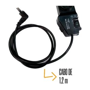 Plugue de alimentação em 90o. Facilidade de conexão em tomadas de difícil acesso